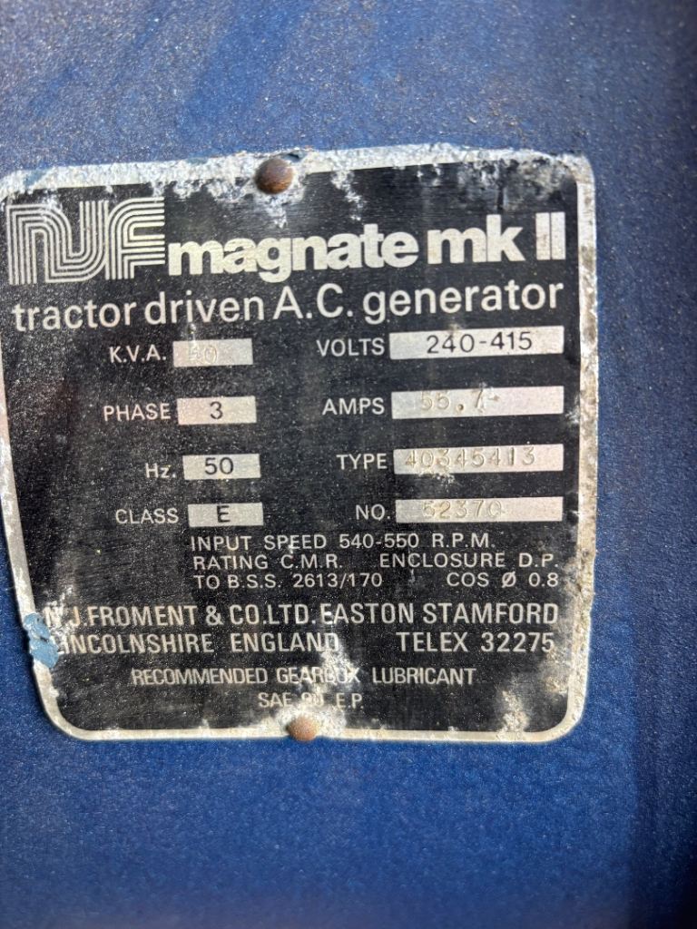 Generator, operated from tractor PTO. 3 phase and 240v good condition and working pick up only 40kva