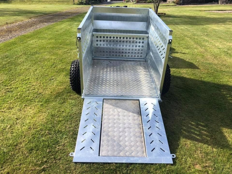 This Chapman ST150 ATV Trailer is robust, reliable, durable, and practical. It has been manufactured in the UK for professional use and has been recently updated in its design with integrated features to make life easier for the user. The 5x3” (1m x 1.5m) quad bike trailer has been galvanized for lasting durability and the full seam welded construction and aluminium chequer plate floor make this ATV trailer a tough, heavy-duty quad trailer for farm, equestrian, smallholder, and estate use.