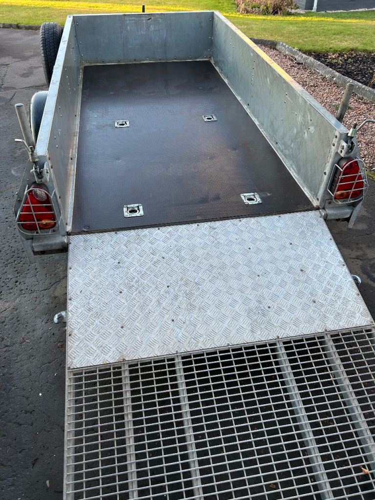2018 ramp trailer, tyres like new including spare which has not been in. Brakes all good, lights, prop stand & guards on back lights. It is a good practical trailer many uses £1,650 no time wasters.-