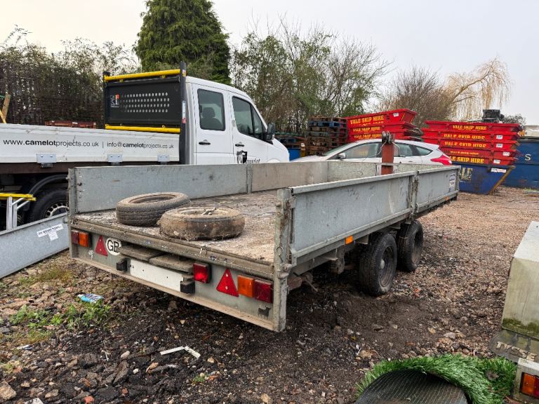 Ifor Williams flatbed trailer with removable drop sides. And rear ramps