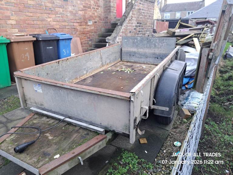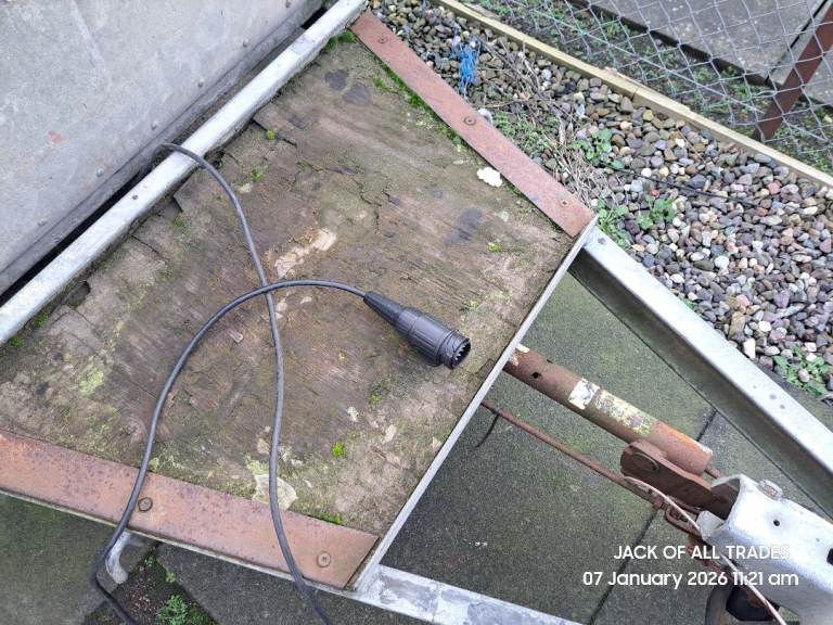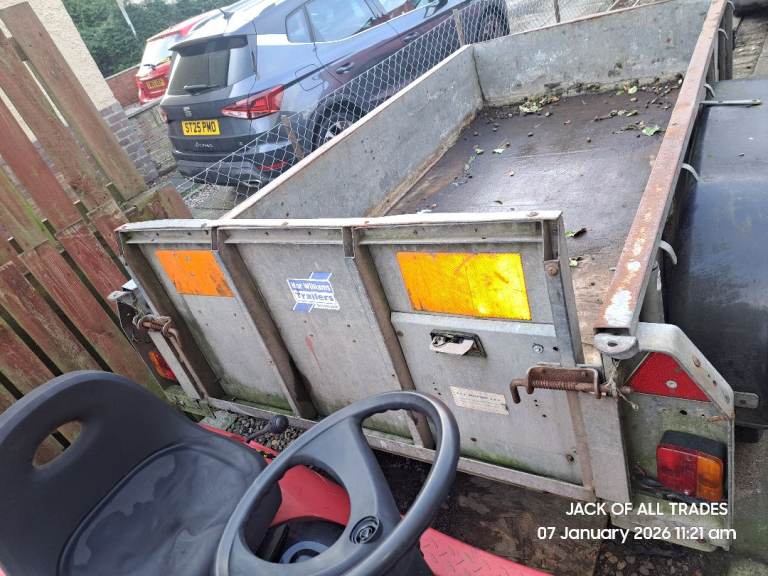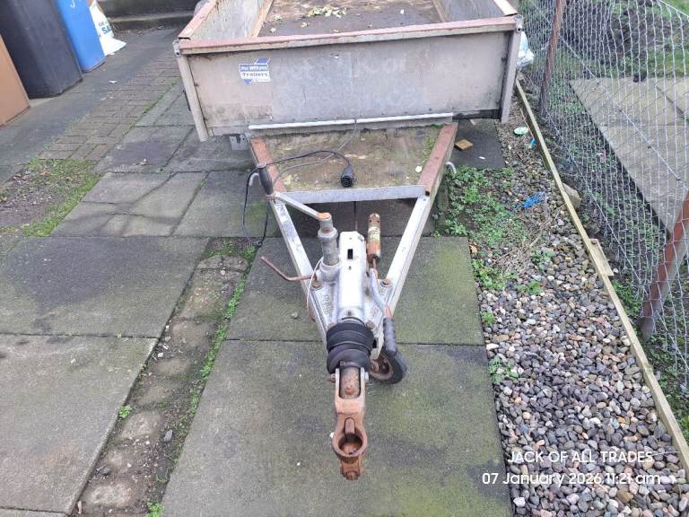 Twin axle ifor williams plant trailer. Good floor. Brakes work but needs new connecting rod. Old one is rusted solid so can't adjust. Slight damage to back left wheel arch. Fitted with euro plug, lights working. Tailgate was shortened by previous owner, Didn't bother me as I hardly towed plant.