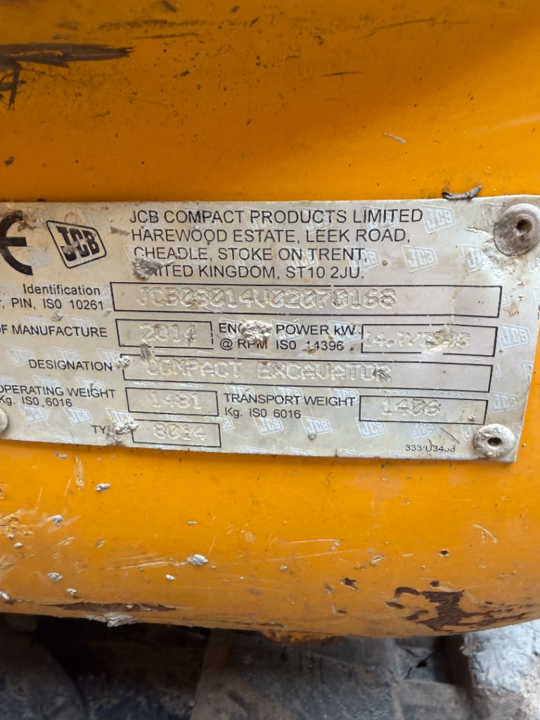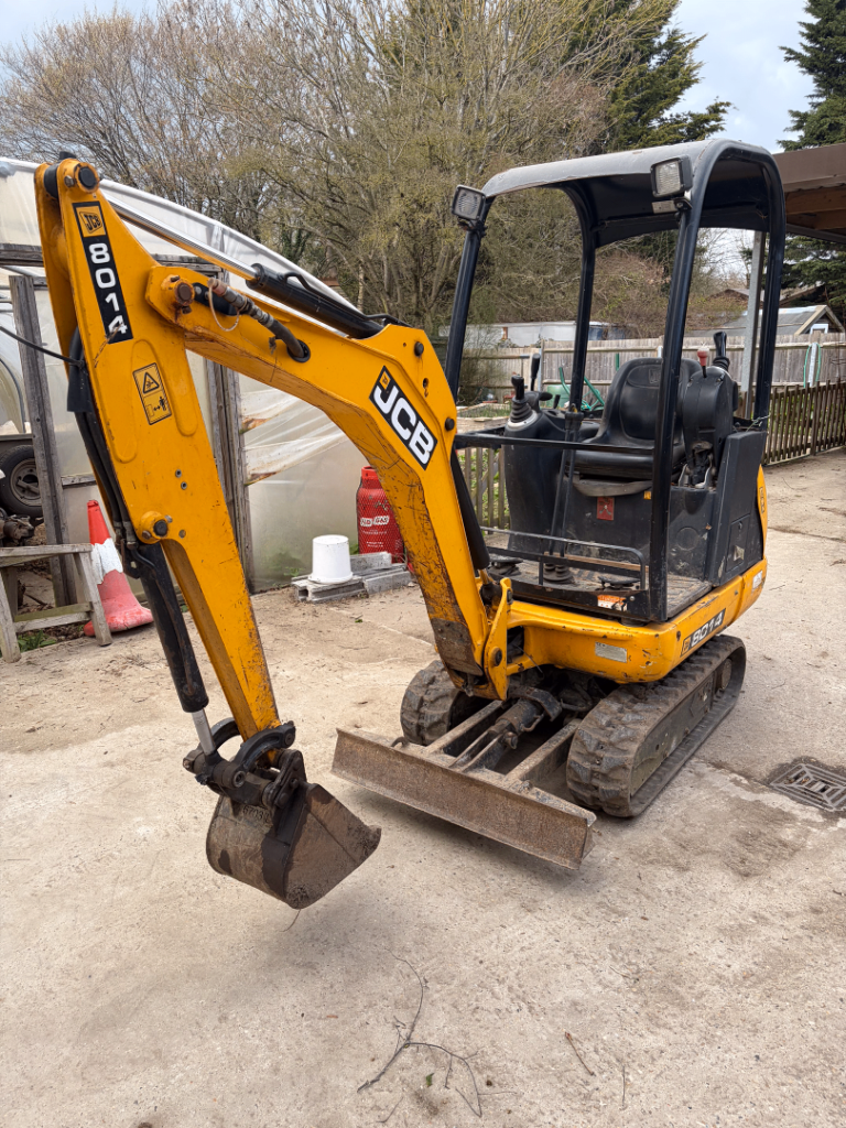 JCB 8014 mini digger. 900mm 600mm & 300mm buckets. Piped for breaker. Starts and runs well no oil leaks. Year 2014. 1052 hours. Little used in recent years been stored dry.