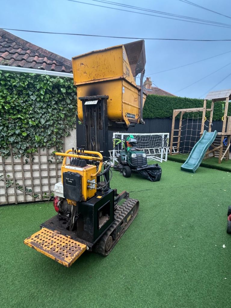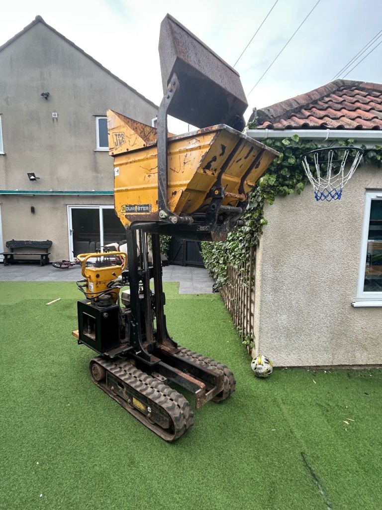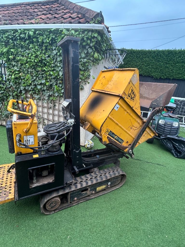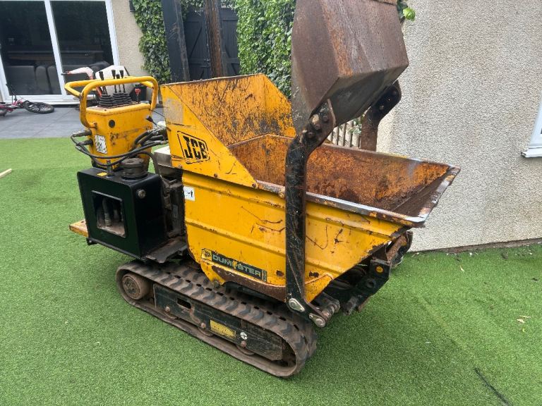 JCB petrol tracked high lift Dumper Td10 in good work in order with front loading bucket can be seen running engine smokes never bothered me finished with my project now so no need for it