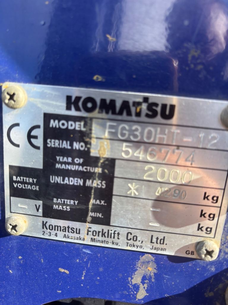 Kamatsu 3.5 ton lift gas fork lift year 2000 model FG30 HT-12 with extended forks works perfect only 4000 hours tidy looking truck only selling I need all terrain no vat