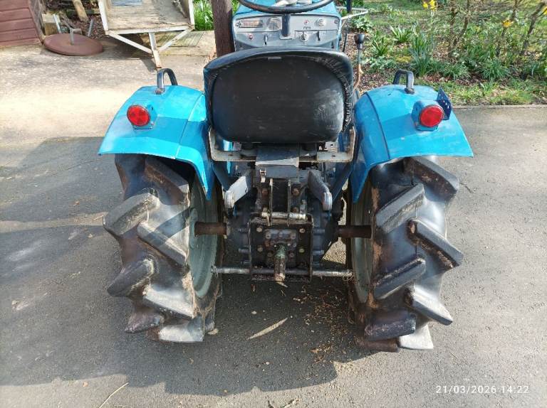 It has a rear linkages for rotary mowers and rotavators together with a drive shaft and 3 speed drive. Front ball hitch. Two wheel drive with deep lug tyres. Three forward gears and one reverse with high and low ratio gearbox.