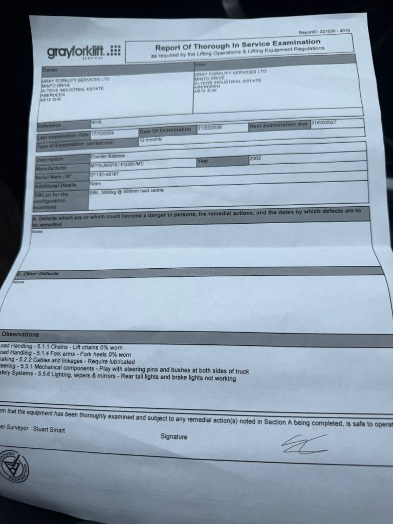 MITSUBISHI FG30K 3 TONNE GAS FORKLIFT**FRESH LOLER**EXCELLENT MACHINE**