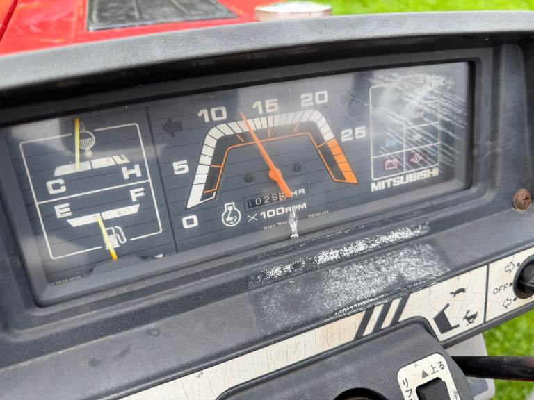 Here is a Mitsubishi 4 wheel drive compact tractor which is in good condition and working order. It starts on the key first time and the 3 cylinder diesel engine which produces 20HP runs very well. The hour clock is working and only showing 1026 hours.
