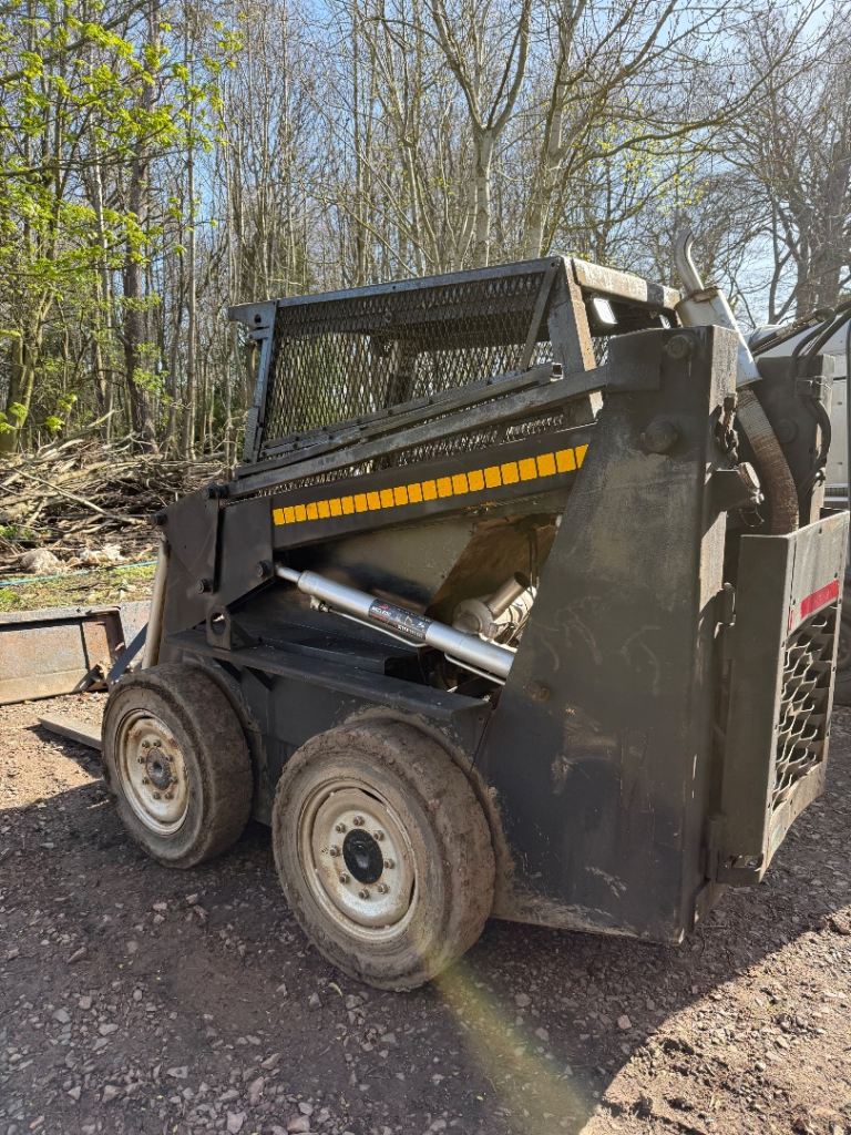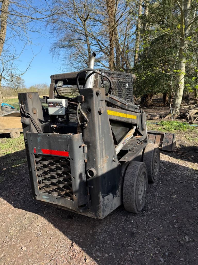 Case 1840 skid steer with bucket and forks. Had solid tires on but comes with brand new off road wheels too.