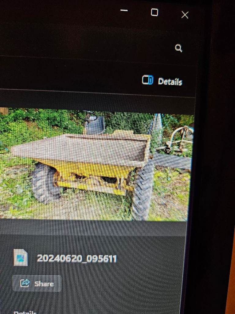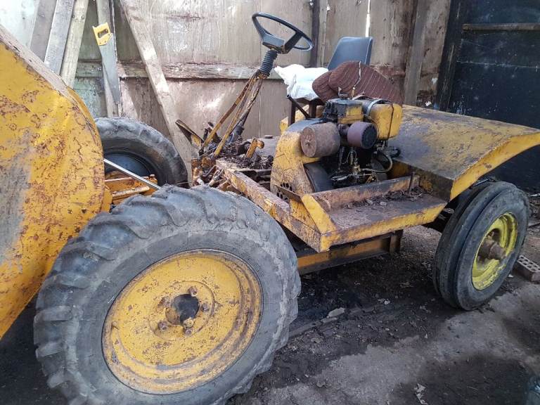Thwaites 15CWT Tusker Dumper, Circa 1965ish. hydralic tip ( working), Petter single cylinder PH1 diesel engine (HAND START). Skip good, 2 new tyres, 1 front 1 rear, used on grass tracks. Been moving manure to our allotments over last 4 years working abourt 10 hrs a year. When started it will run all day, as with these old machines there is a knack to start but have mastered this so i can start it after 1 year standing at least second time.