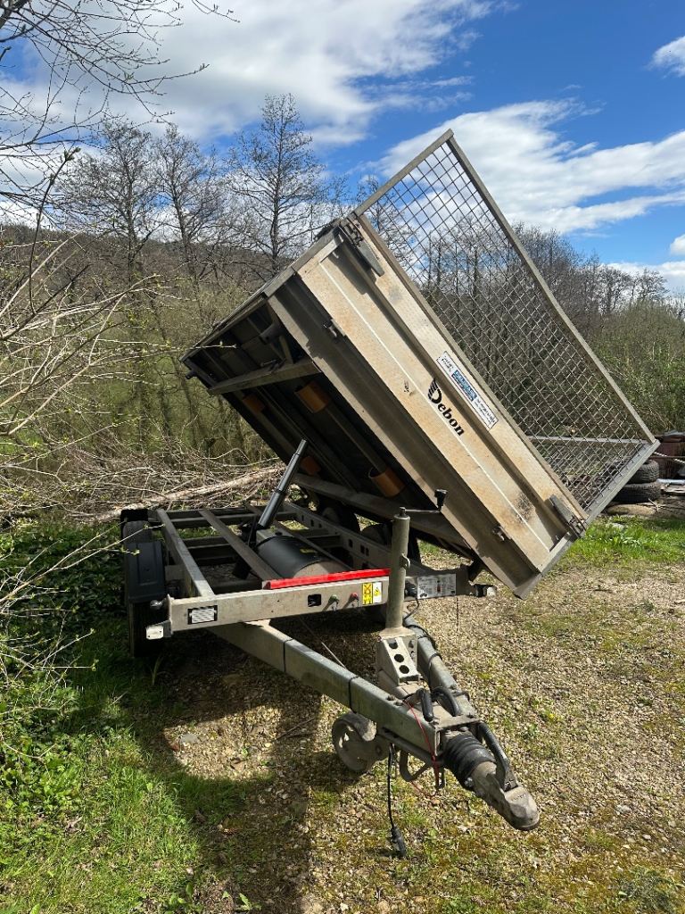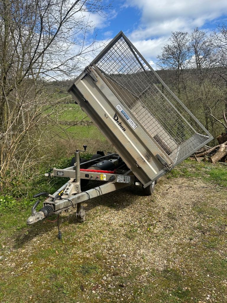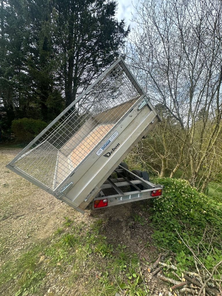 Debon 10ft x 6ft 3 way electric tipping trailer available for hire.
