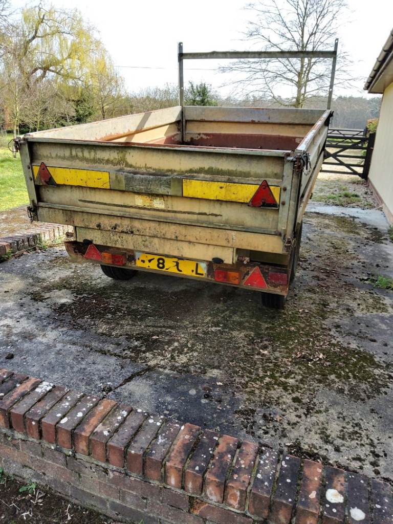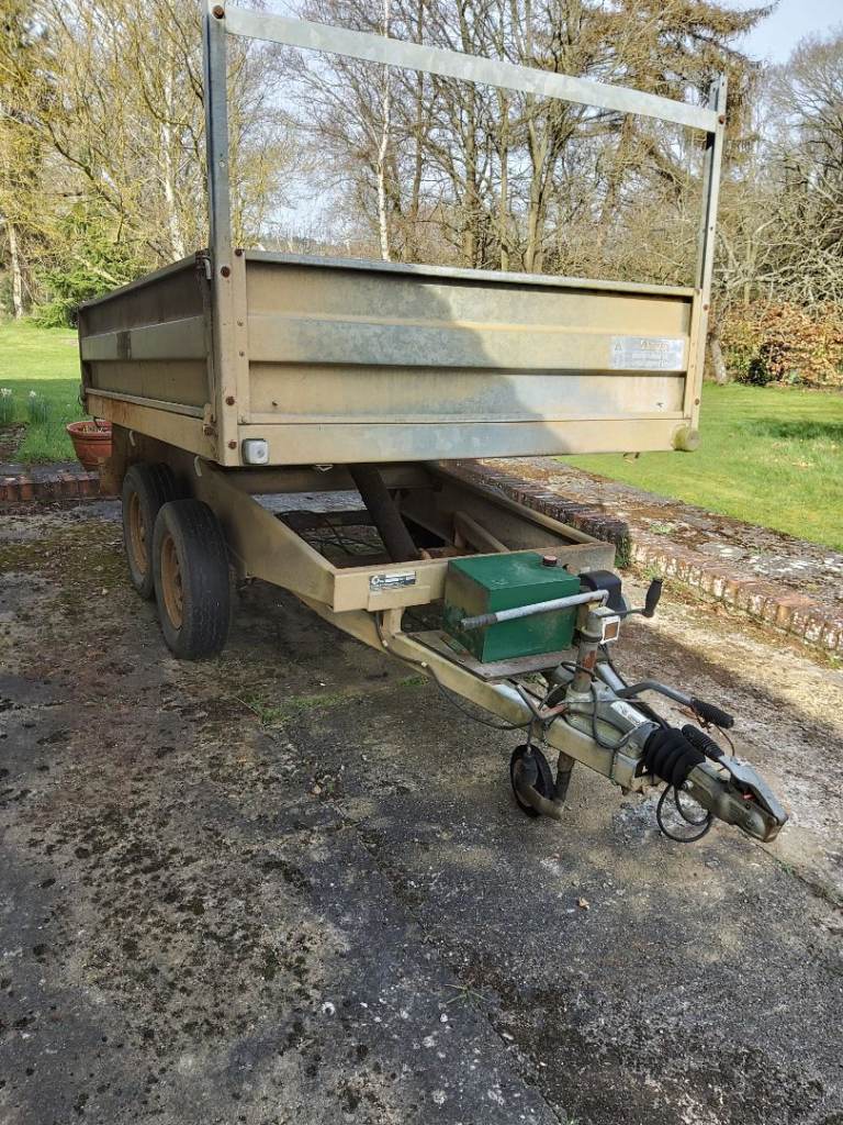 Two tonne capacity tipping trailer. Deck measures 8ft x5ft.