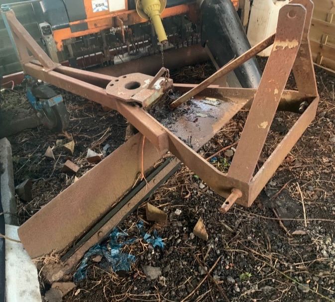 Rear 3 point mounted tractor grading blade. Very solid, has rear adjustable caster/guide wheel. Blade is 5ft wide and it’s around 6 ft long from rear wheel to the 3 point linkage. No VAT to add. Delivery possible, please ask for a price.
