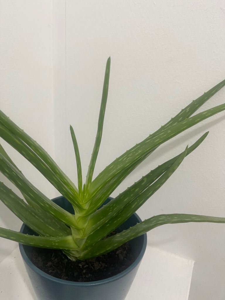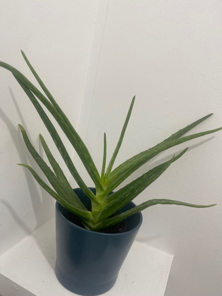 Aloe Vera Plant in Blue Ceramic Planter In good condition.