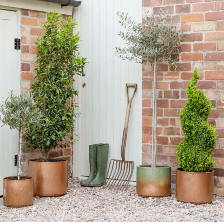 3 bamboo plants, 2 large & 1 small includes one large metal pot/container £50 the lot.