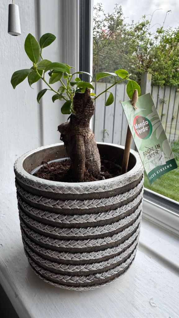 Ficus ginseng plant and decorative pot