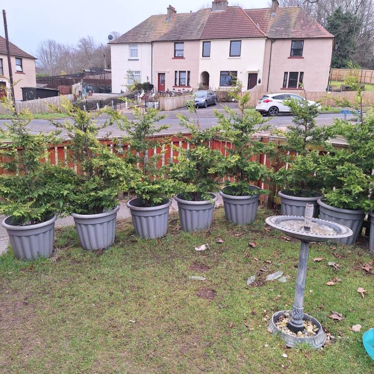 Fast growing gold leylandi trees in 50cm pots.15 trees 6 feet tall. They have to go now they have outgrown our small garden. Will be great cover for driveways and privacy in bigger gardens. I bought them 5 years ago as small trees now see how big they are. COLLECTION IN PERSON ONLY.