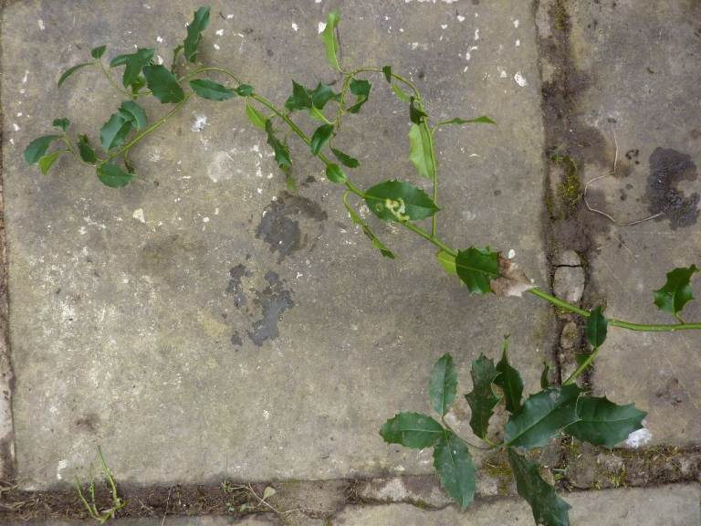 Holly tree pot grown for about 12 years. Initially trained as bonsai, but then allowed to grow too tall.