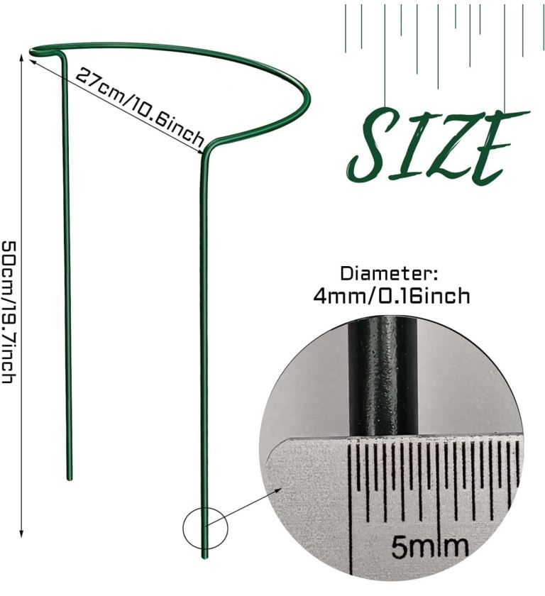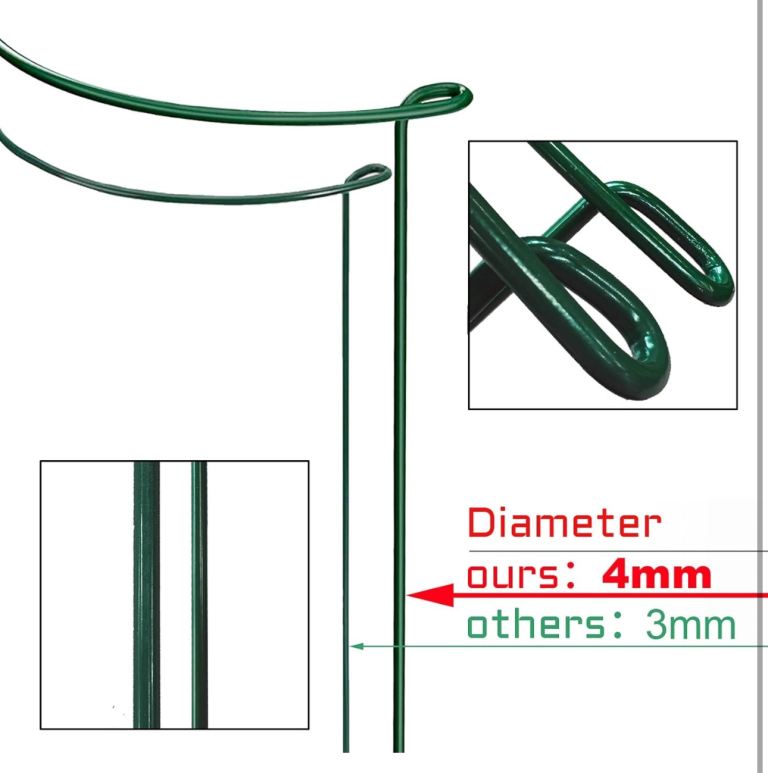 【50cm High 4mm Diameter】Made from strong, rust-proof green coated steel. Measuring a generous 4mm diameter and 50cm high, sturdier and stronger than others 3mm diameter, which can support heavier & taller plants