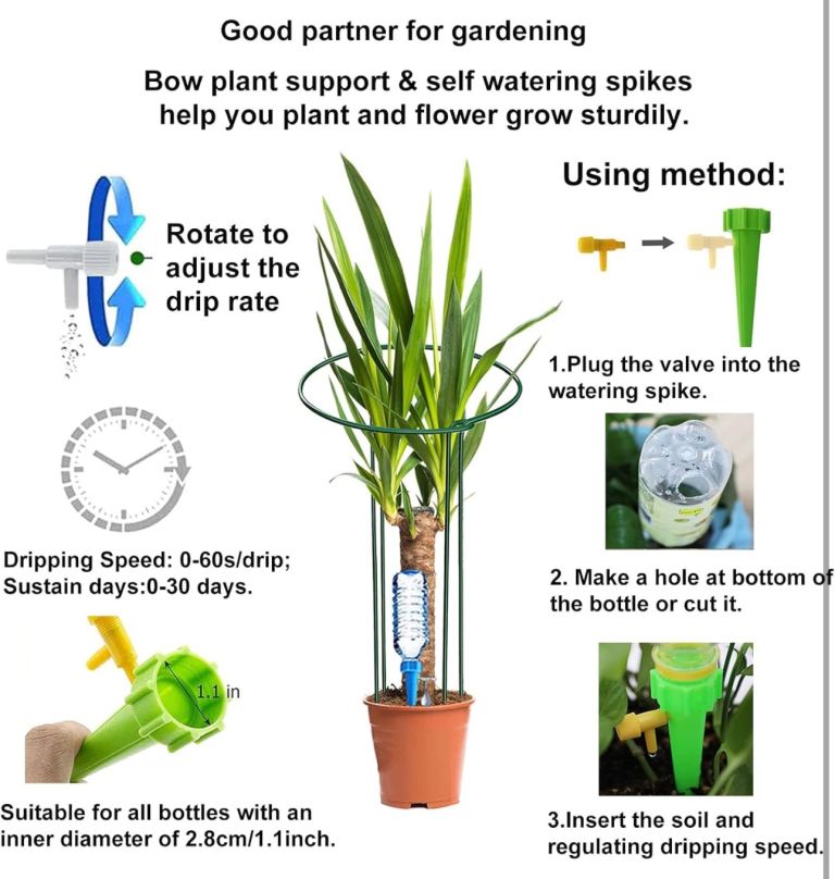 【Good Partner for DIY Home Gardening】You need plant support stakes to prevent stems from bending and entangling with each other; You need self watering spikes watering your plants automatically when you are on a business trip or don’t have time to water your plant every day. Everything you need