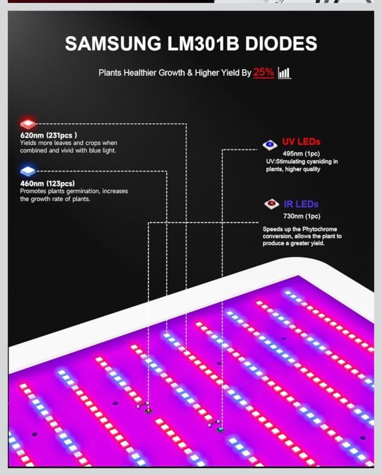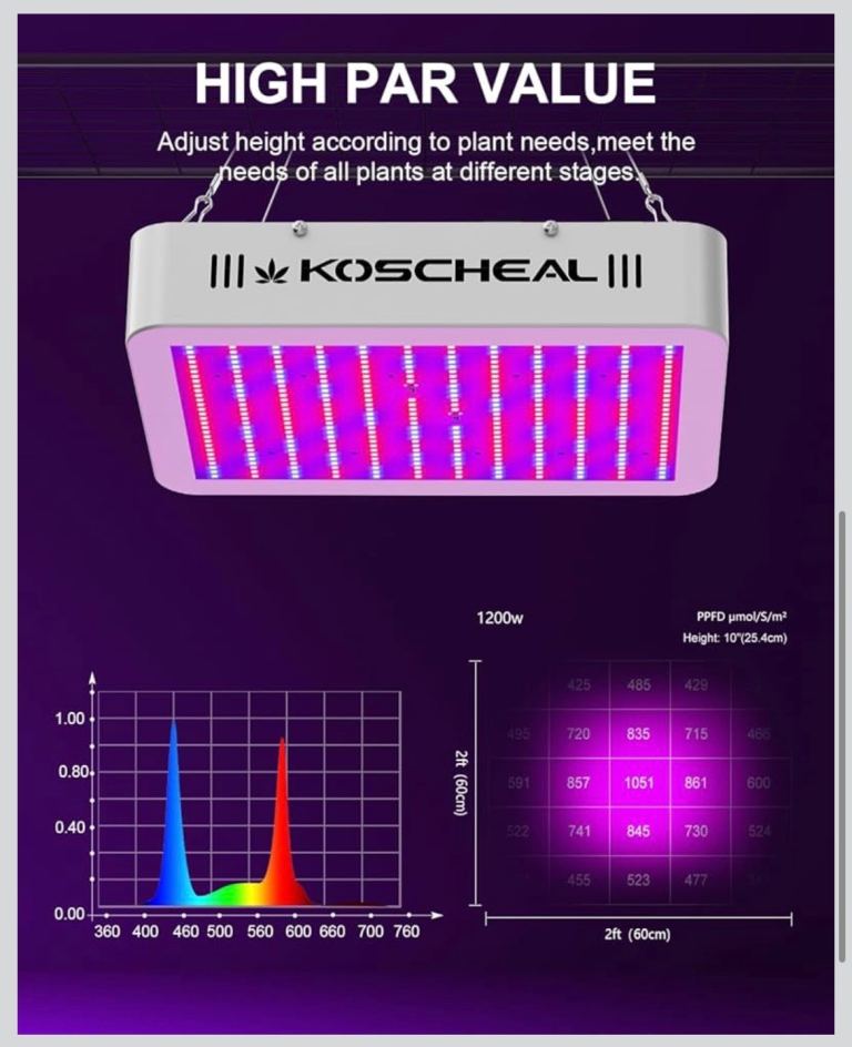 KOSCHEAL KS1200 LED Plant Grow Light Full Spectrum Daisy Chain with LM301B Veg Bloom Double Switch for Indoor Plant Seedling Flower and Fruiting to Provide Suitable Spectrum Quiet Built-in Fan 130W±5%