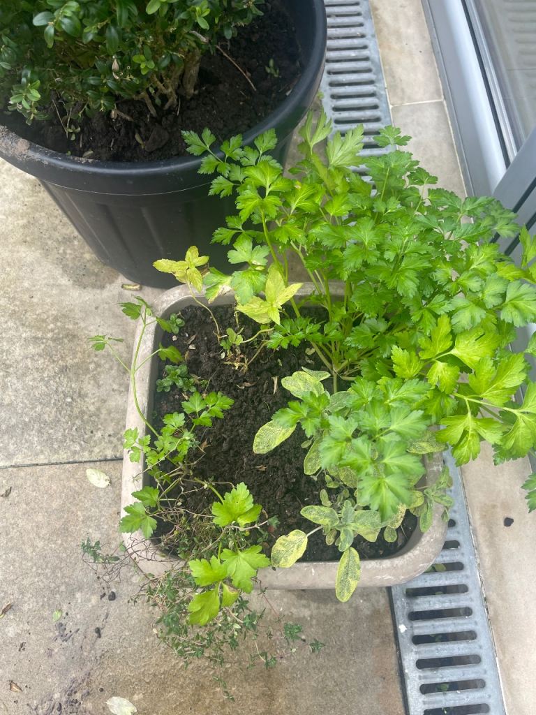 Large planter with herbs: thyme, mint, sage, parsley. Fulham