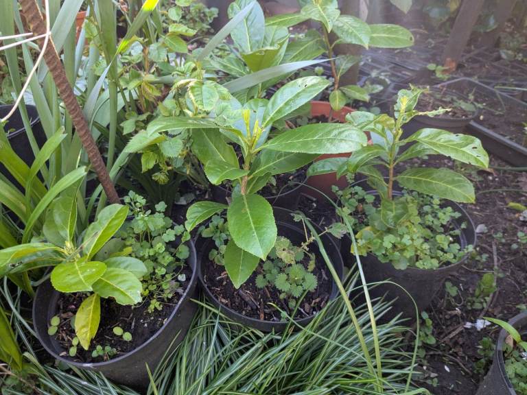 Potted laurel seedlings