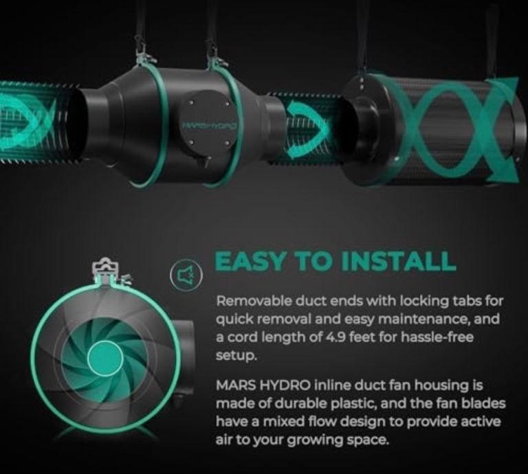 Low Noise Level: Durable plastic fan housing and blades for extremely low noise(28 dB), create a truly quiet growth environment.