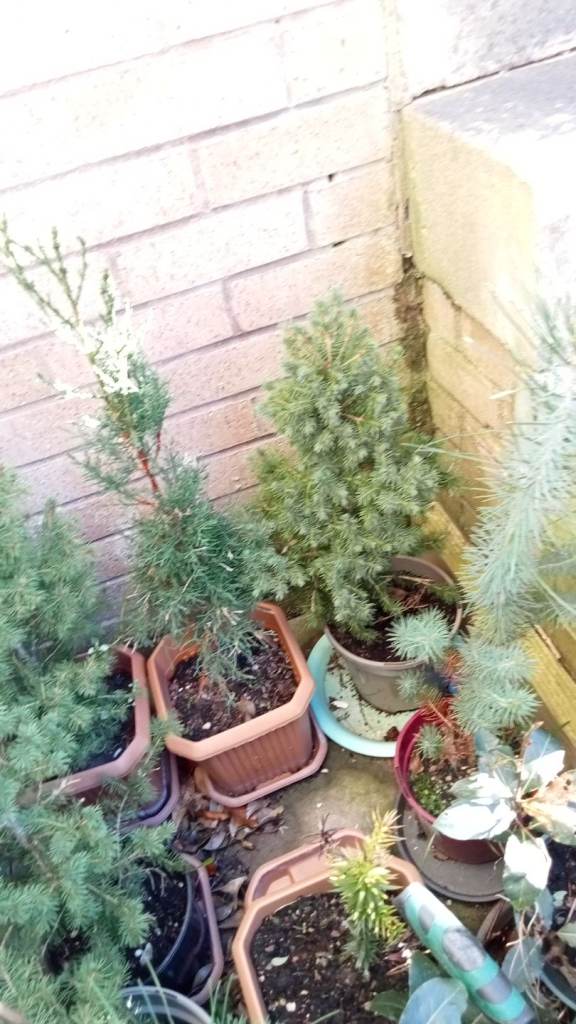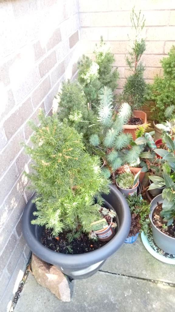 Various conifers for sale don't know what variety they are but used as small decorations at Christmas