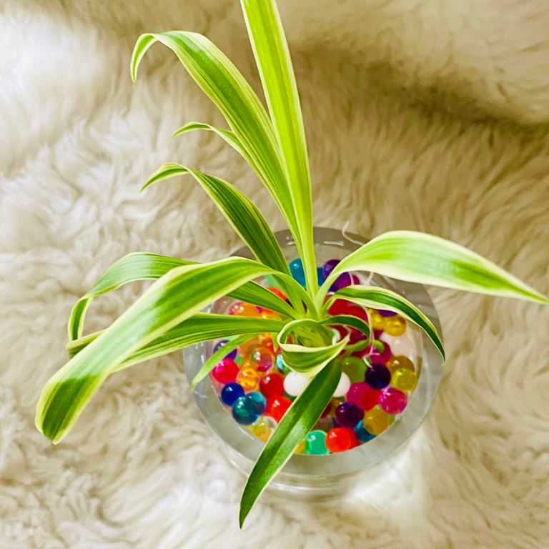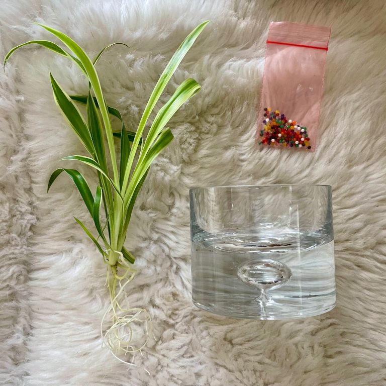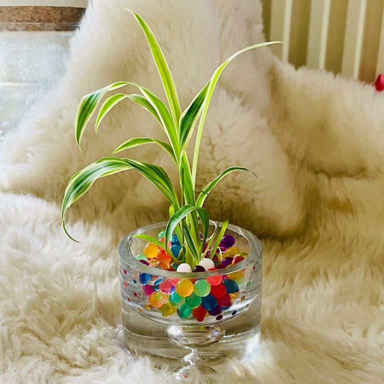 Set of Rooted Baby Spider Plant, Bubble Base Short Glass Tumbler & Colourful Water Beads