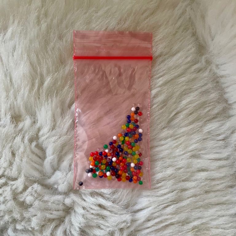 Set of Rooted Baby Spider Plant, Bubble Base Short Glass Tumbler & Sachet of Colourful Water Gel Beads