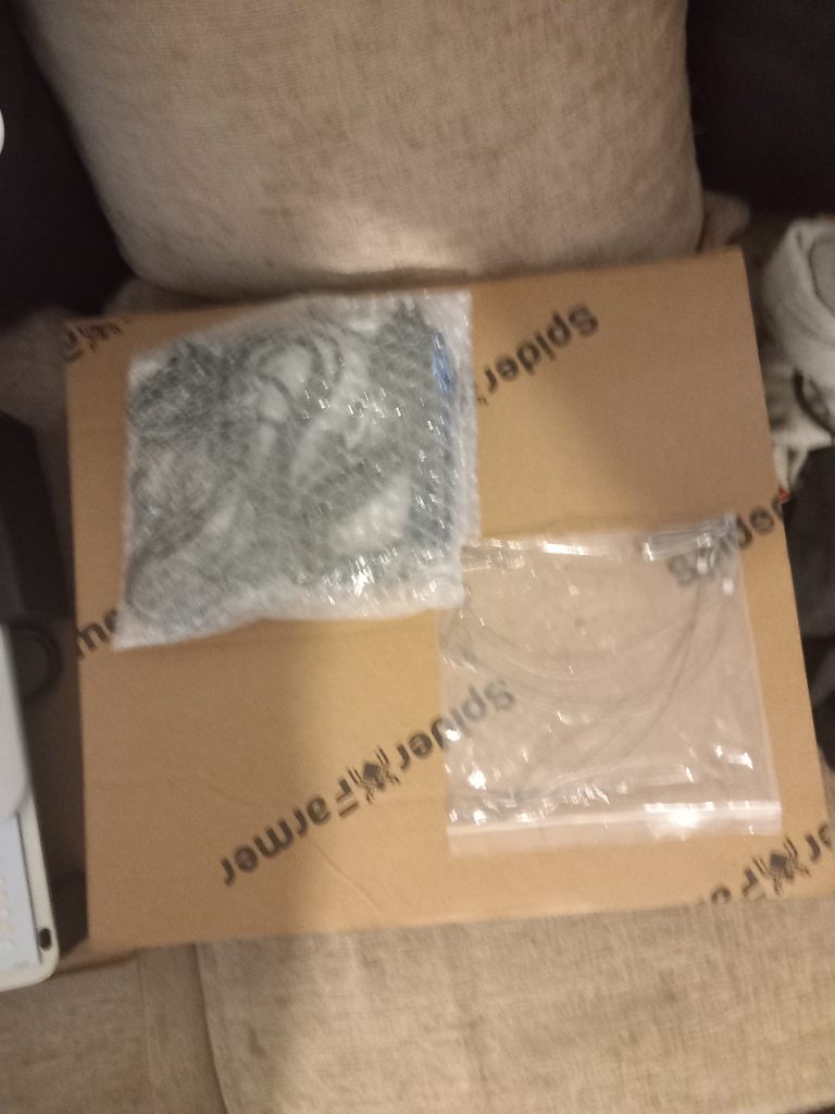 Comes with hangers and adjustable ratchet cables, manual, and sticker sheet