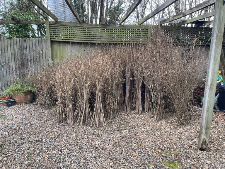 I'm a local Horsham resident and have recently harvested my hazel hedgerow, and as a result have several hundred hazel pea sticks of various sizes available for this season.