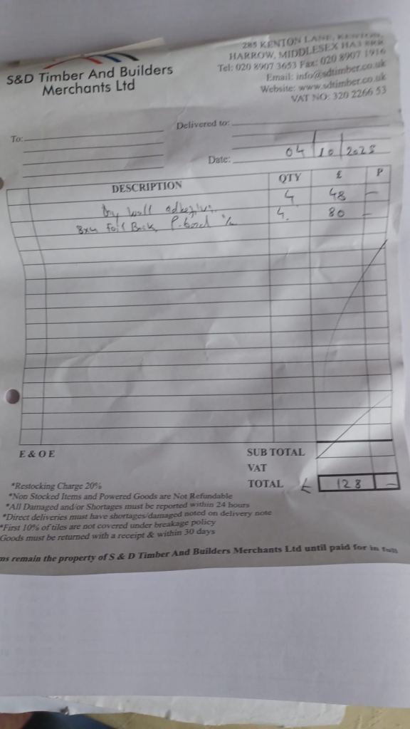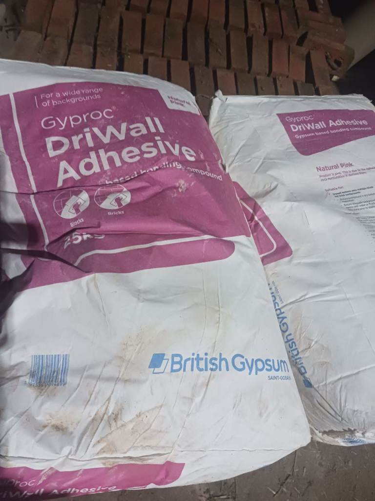 Selling this 25kg bag of dot and dab plasterboard adhesive due to over order. Bought on 4th October, can’t return. All dry, stored in a brick shed. Cost £12.