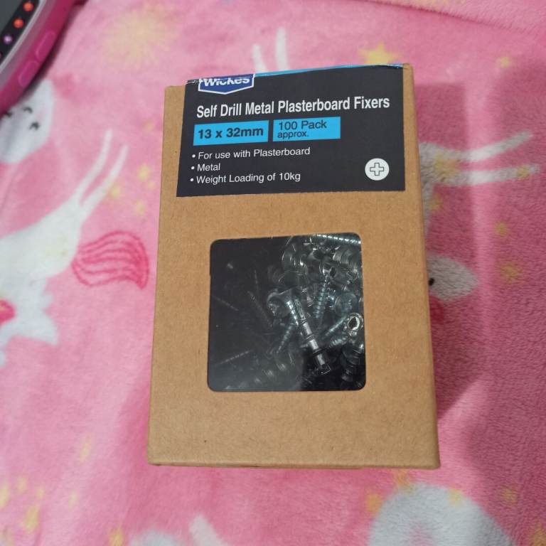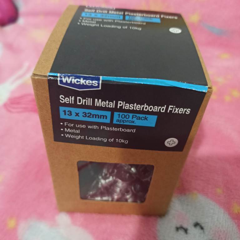 For sale a new sealed pack of Self drill metal plasterboard fixers 13 x 32 mm 100 pack, new sealed