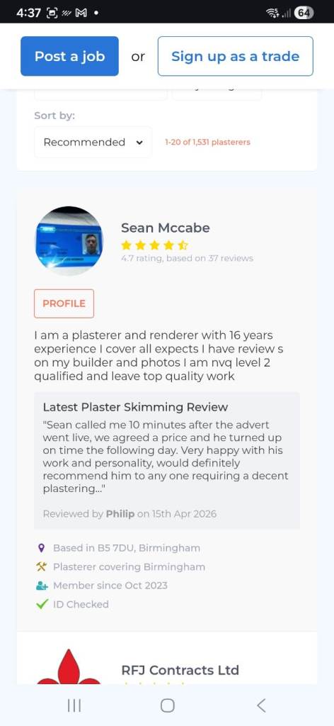 Plasterer 22 years experience working in domestic and commercial striving for best finish possible for your walls and ceilings