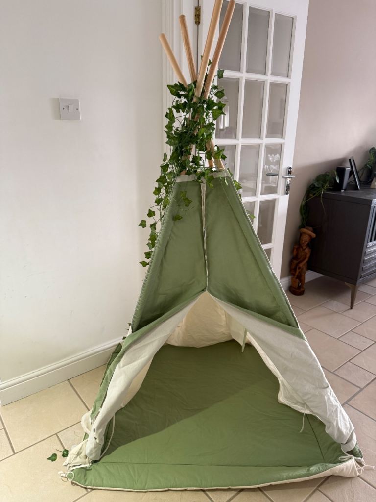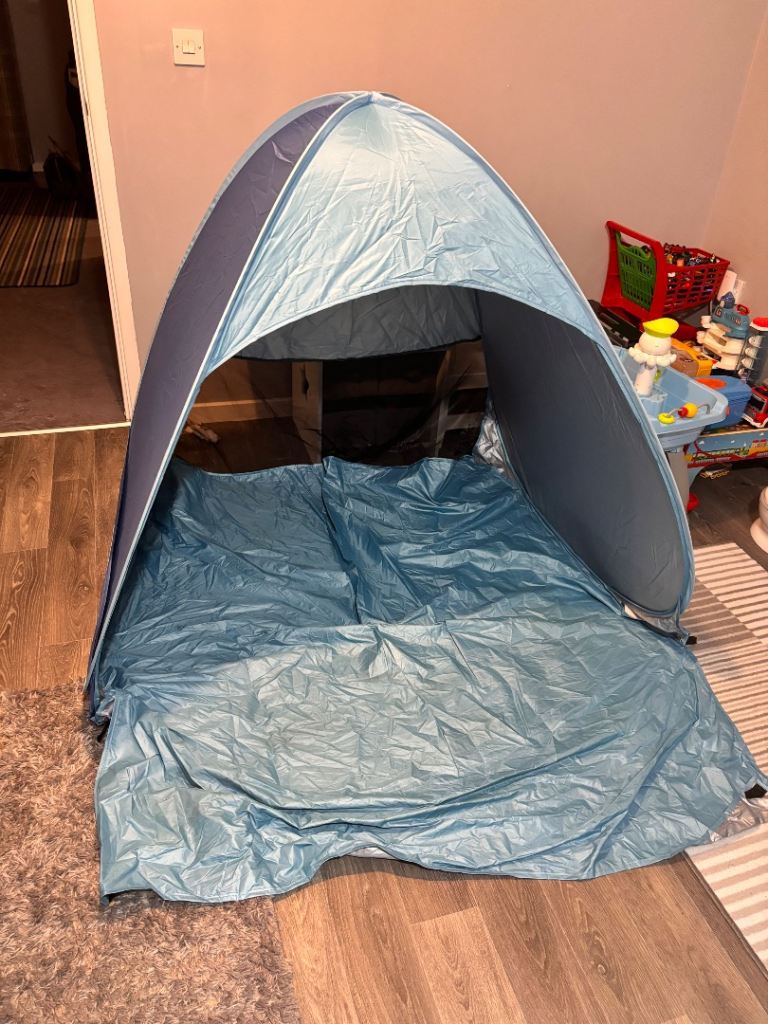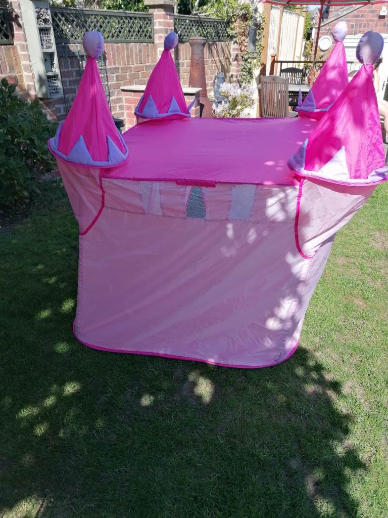 Pop-up play tent, suitable for indoor and outdoor use. Easy to assemble with plastic poles. Dimensions 100 x x 100 x 85cm (135cm high to top of turrets). Very good condition. Smoke and pet-free home. Collection Willerby HU10.