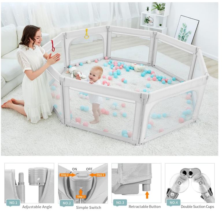 Posting for 12+ yearsAmazon - Doradotey Baby Playpen Foldable 59" x 71" x 27" Oxford Light Grey