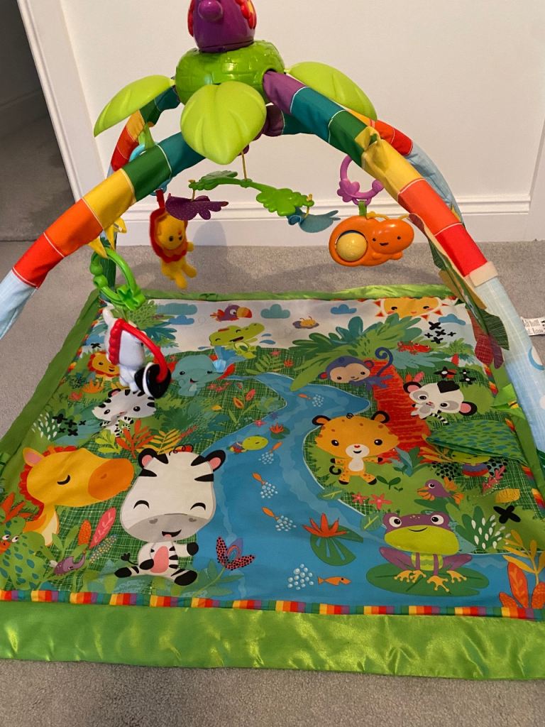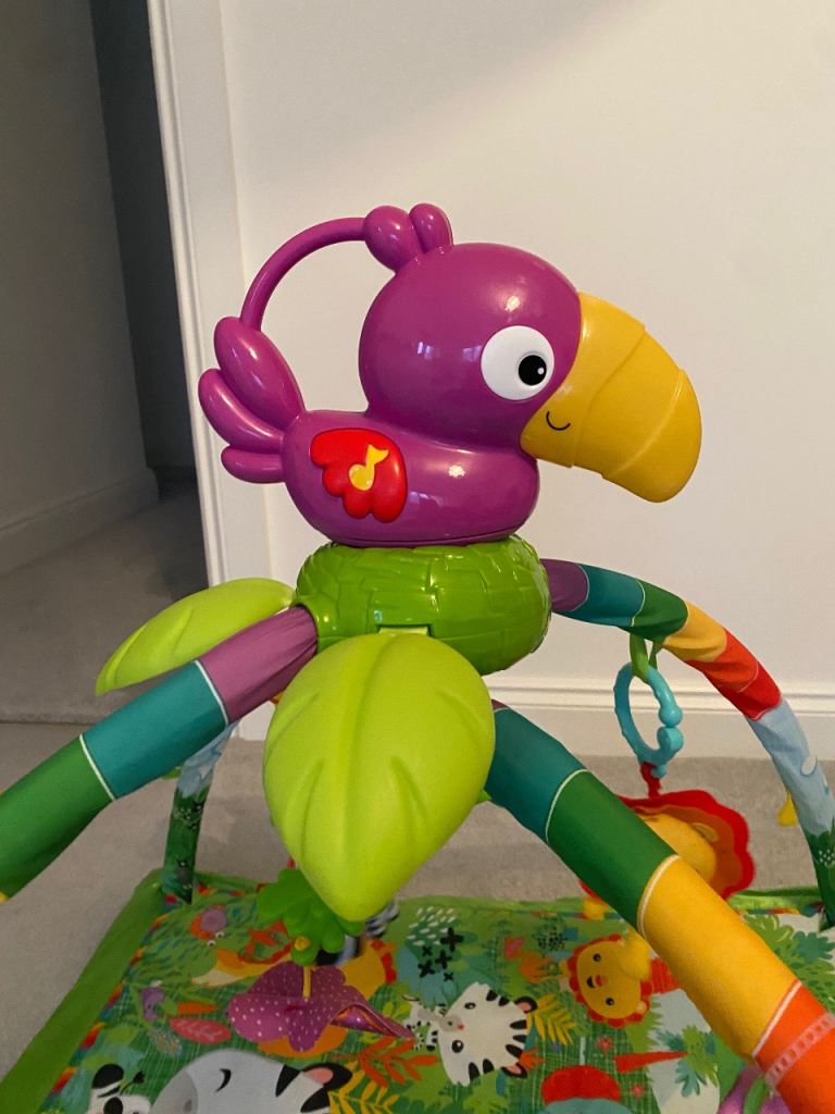 This is a great play mat for infants. Comes with hanging animals/singing parrot and jungle base