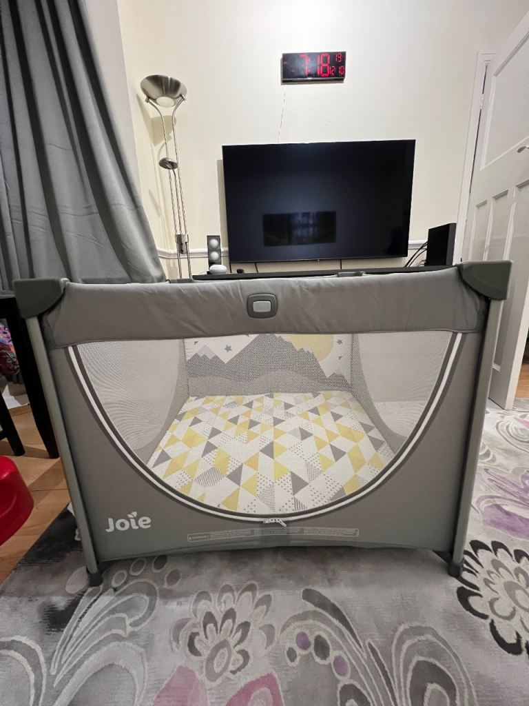 Give your little one a safe and secure area to play with this pre-loved travel cot / playpen. It's perfect for sleeping or just keeping them contained while you get on with other tasks.