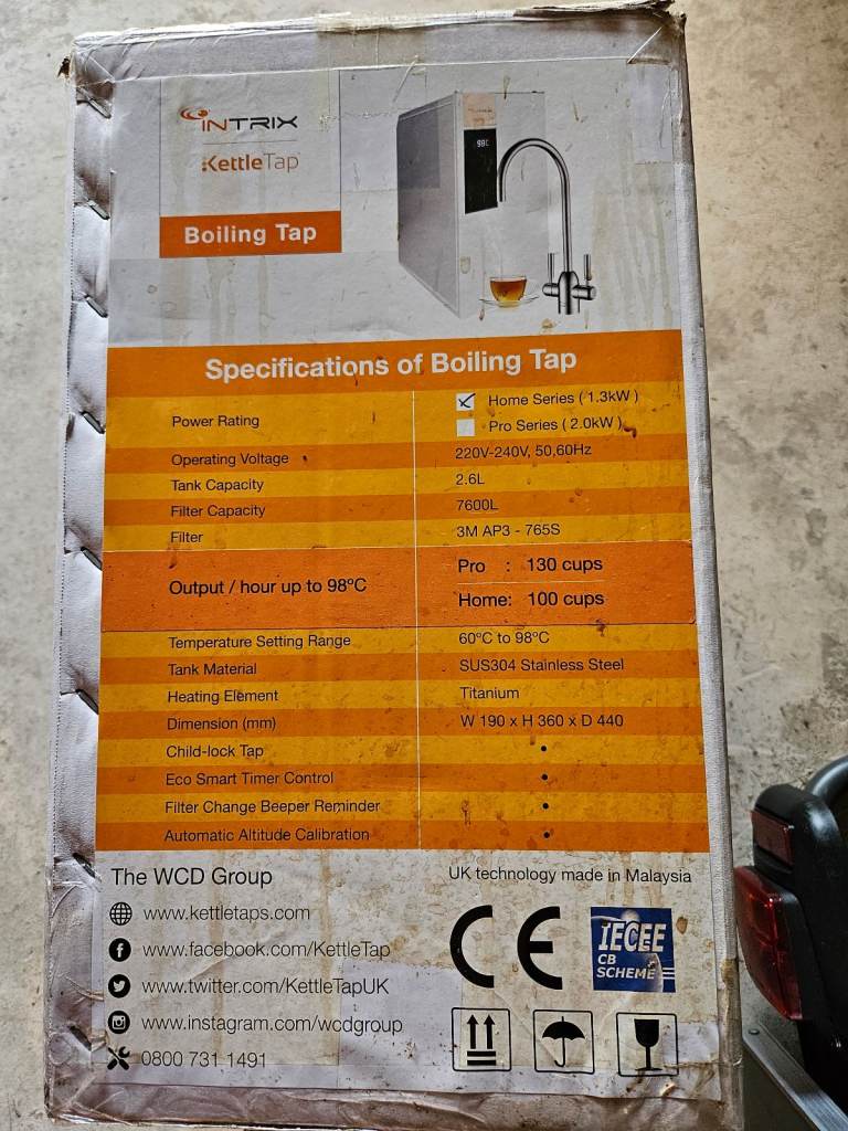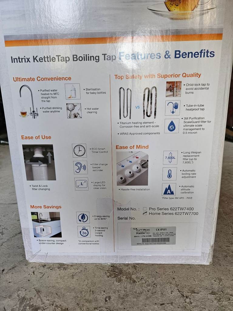 Intrix kettle Tap and Boiler Home series 622W7700T. Brand new in box includes Tap. See pictures for full specification.