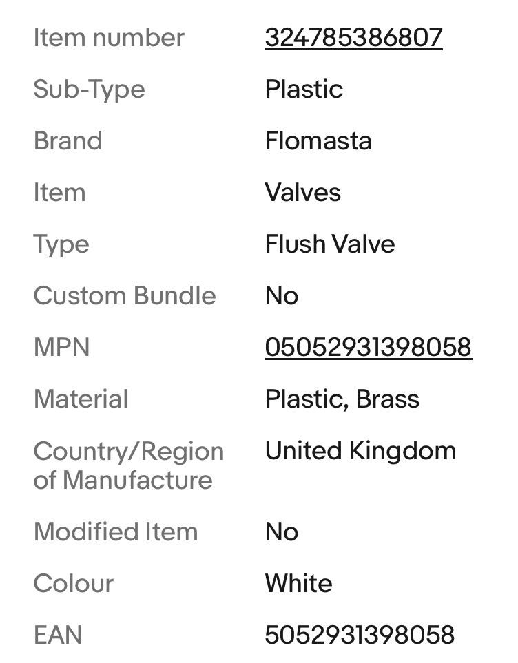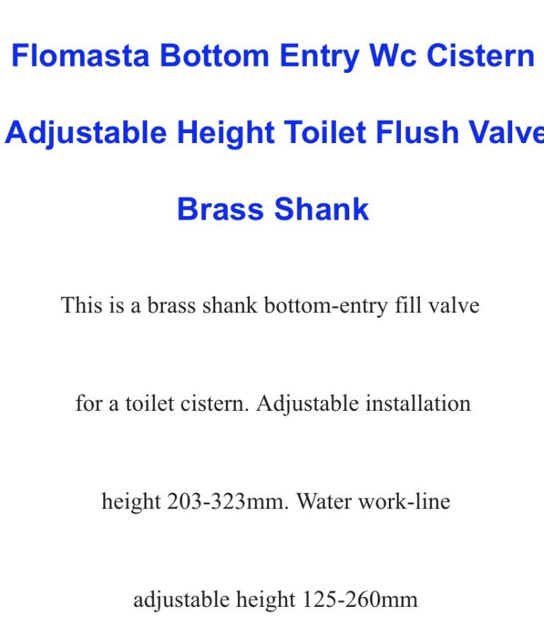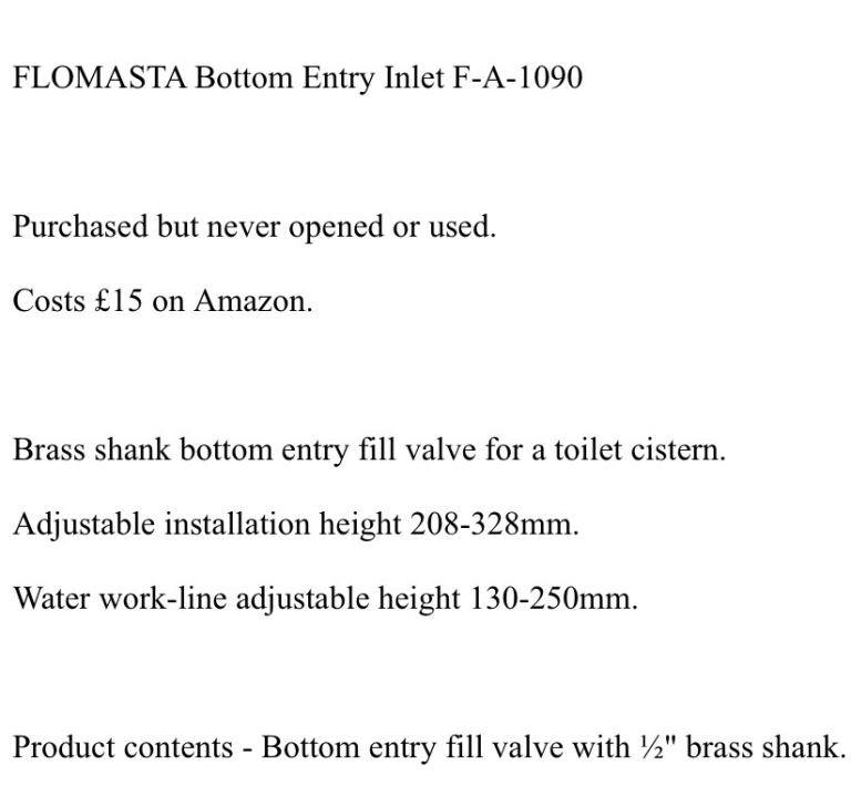 As per photos 1/2” bottom brass inlet valve flomasta for toilet cistern two available £8.00 each or two for £15.00