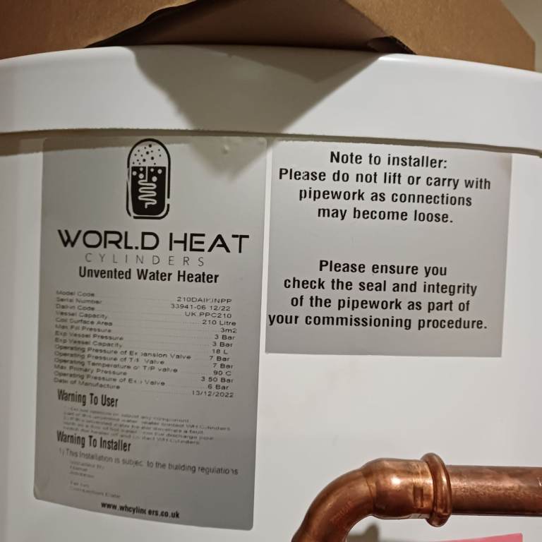 Posting for under a monthDaikin 210L Unvented Hot Water Cylinder – Brand New Condition
