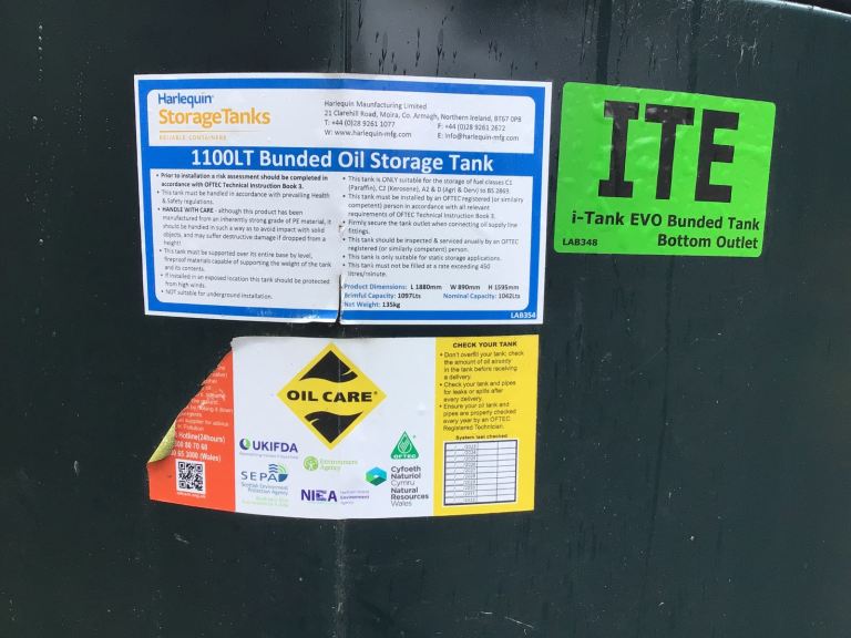 Harlequin 1100 ltr bunded heating oil tank dated 2023