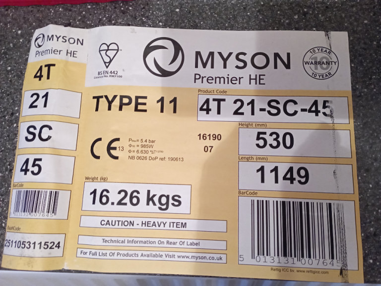 myson premier he, roundtop radiator, 1149 x 530mm single panel, new old stock,