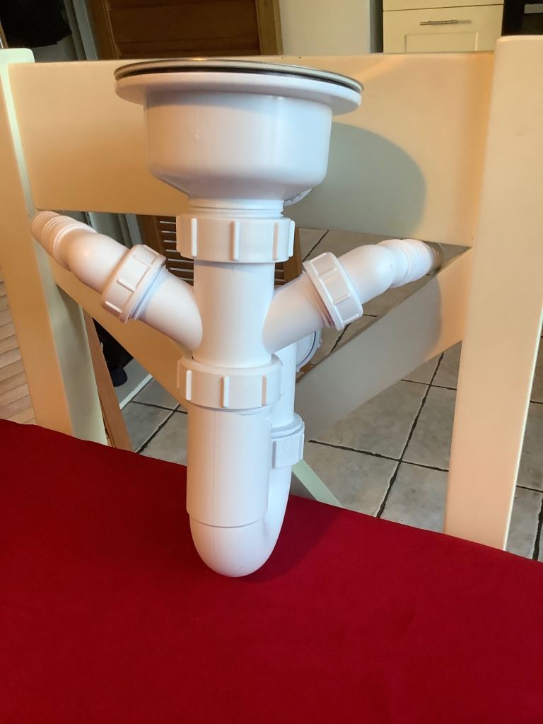 Brand new extending sink trap overall length 11 inches to Apx 13 inches see photos . The sink drainer has a diameter of4 and a half inches with push in and out strainer . Double nozzles for 2 appliances . Cash buyer to collect if in North Baddesley area can deliver