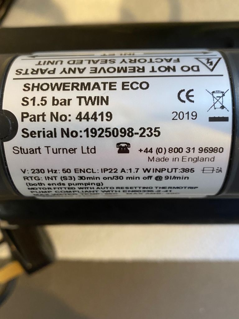 Pump for the use of adding power to the water pressure of a gravity-fed domestic system. Used only for 3 months. Cost new £125