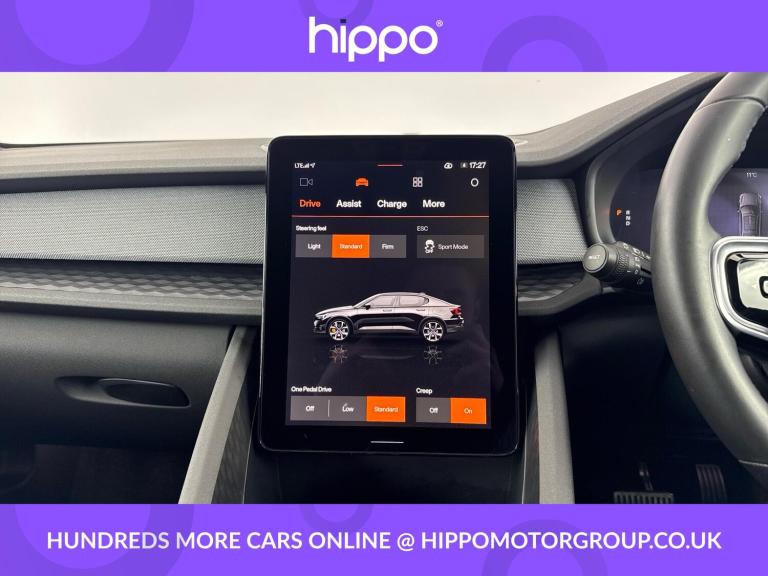 Presenting this Polestar 2 Dual Motor 78kWh Long Range Fastback 5dr Electric Auto with 4-wheel drive, offering 408 ps and just 41,988 miles covered. This well-equipped electric vehicle is fitted with striking 19-inch 5-double spoke black diamond cut alloy wheels and benefits from a practical 2-zone climate control system for individual comfort. Bluetooth connectivity provides seamless communication, while the digital DAB+ radio offers a range of listening choices. For added reassurance on the road, the vehicle features cruise control with an adjustable speed limiter and speed sign support. Convenience is further enhanced by full parking climate and preconditioning, as well as heated front seats, ensuring a comfortable experience regardless of the weather. Parking assistance is included at both the front and rear, complemented by a rear view camera for safer and easier manoeuvres. Hippo Approved is known for a wide selection of vehicles suited for various needs and budgets. Each car undergoes a rigorous 130-point quality and safety inspection at our state-of-the-art £3 million preparation centre, ensuring your peace of mind. Additionally, we offer tailored finance packages for personal and business use, making it easy to acquire your ideal car.
