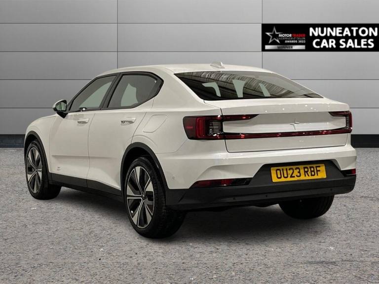 Polestar 2 Single Motor 69kWh Standard Range Fastback - 360 camera, Heated front seats, Sat Nav, Apple Car Play, Android Auto - Part Service History This 2023 Polestar 2 Standard Range is a single owner electric vehicle with a clear vehicle history check. It offers a substantial battery total capacity of 69 kWh, providing a maximum range of 297 miles when new. Convenience features include heated front seats, Bluetooth connectivity, and keyless entry with handsfree boot lid opening. For ease of parking, it is equipped with a rear view camera, and the semi electric front seats include drivers seat memory for personalised comfort. The Polestar 2 Standard Range demonstrates impressive performance, achieving 0-60mph in just 7.0 seconds, which is a strong indicator of its dynamic capability compared to other vehicles in its class. Furthermore, its electric powertrain allows for a full charging time at home using a 7kW charger of approximately 11 hours, and it can reach 80% charge from empty in a rapid 36 minutes at a public charging station, highlighting its practicality for everyday use and longer journeys. Combining comfort, performance and practicality, this model is ideal for business use, long-distance driving or premium daily motoring. Service History Part service history recorded as follows: • Feb 2026 Nuneaton Car Sales Key Features & Specification • 19 Inch Alloy Wheels • Full LED Lighting • Front and Rear Parking sensors / 360 cameras • Cruise Control • Air Conditioning / Dual-Zone Climate Control • Satellite Navigation • DAB Digital Radio • Bluetooth Connectivity • USB / Voice Control • ISOFIX Child Seat Mounts • Driver Assistance Features • Apple Car Play, Android Auto Vehicle Information • Registration: 28/04/2023 • Mileage: 38485 • Fuel Type: Electric • Transmission: Automatic • Owners: [1] • HPI Status: Clear Why Buy From Nuneaton Car Sales? * Multi Award-Winning Dealership * AA Approved Dealer * NO ADMIN FEES * 12 Months AA Breakdown Cover * Multi-Point Vehicle Inspection * Free MOT if due within 6 months * Competitive Finance Available * Part Exchange Welcome * Click & Collect & Home Delivery Available * Same Day Drive Away on most vehicles Extra Peace of Mind Personalised walk-around videos available on request. All vehicles professionally prepared and valeted prior to sale. This vehicle is price-checked daily against th.11.15-inch Centre Display, 12.3in Progressive Digital Driver Display, 12V Power Socket Luggage Area, 19in Alloy Wheels - 5-Double Spoke Black Diamond Cut, 2 USB-C Connectors Front, 2 USB-C Connectors Rear, 2-Zone Climate Control, 4-way Power Adjustable Lumbar Support - Front Seats, ABS - Anti-Lock Braking System, AVAS - Acoustic Vehicle Alert System, Adaptive LED Headlights, Adjustable Steering Force, Alarm Inclination Sensor, Alarm with Interior Alarm Motion Sensor, Alcolock Prep, Apple CarPlay, Automatic Dimming Interior Mirror, Bluetooth, Charcoal Headlining, Charging Cable - 6m - IEC 3P 230V - 16A 11kW - Type 2 - Mode 3, Charging Cable - 7m - IEC 1P 230V - 32A 2.3kW - Schuko Type 2 - Mode 2, CleanZone with Pre-ventilation and Multifilter, Collision Avoidance and Mitigation by Braking and Steering, Connected Safety, Cruise Control and Adjustable Speed Limiter with Speed Sign Support, Cup Holders - Front Seats, Cup Holders - Rear Seats, Curtain Airbags, Cut Off Switch - Passenger Airbag, Digital Radio DAB+, Double-locking Door Locks, Driver Alert Control, Electric Tailgate with Soft Closing, Electronic Stability Control, First Aid Kit, Forward Collision Warning, Frameless Electric Auto Dimming and Heated Side Mirrors, Front Airbag - Driver and Passenger, Front Seat Whiplash Protection, Front Storage Compartment - 35 Litres, Front and Rear Power Windows, Full Parking Climate and Preconditioning, Full-LED Rear Light Bar with Persistent Light Signature - Automatic Dimming, Google Service Connectivity Inc for 3 Years, Heated Front Seats, Hexagonal Shaped Gear Shifter with Illuminated Polestar Symbol, High Performance Audio 8 Speakers-250W, Hill Start Assist, ISOFIX for Rear Seats and Front Passenger Seat, Infotainment System Powered by Android, Inner Side Airbags, Integrated e-SIM with Constant Internet Connectivity, Keyless Entry with Handsfree Boot Lid Opening, Lane Keeping Aid with Steering Support, Mid-level Interior Illumination, Oncoming Lane Mitigation, One Pedal Drive - Adjustment, One Remote Key Fob and One Waterproof Activity Key Tag, Over the Air Updates, Parking Assistance - Front and Rear, Polestar App with Vehicle Functionality, Polestar Connect, Polestar Digital Key, Post-impact Braking, RSI - Road Sign Information, Rear Seat 40-60 Split, Rear View Camera, Run Off Road Mitigation and Protection, Safety Assistance, Semi-Electric Front Seats with Drivers Seats Memory, Side Airbags - Front, Side Airbags - Rear, Textile Floor Mats, Thors Hammer