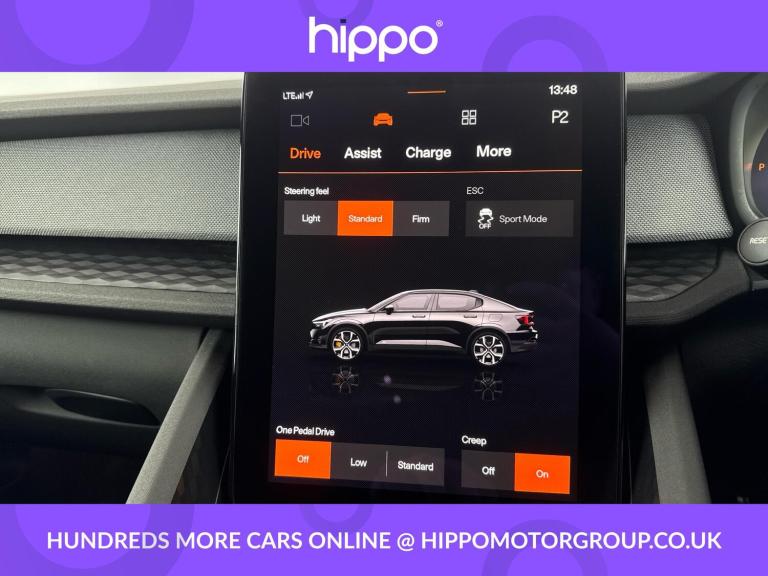 Presenting this Polestar 2 Single Motor 78kWh Long Range Fastback 5dr Electric Auto FWD (231 ps), offering modern electric driving with a substantial range. This vehicle has covered 51,021 miles and has a documented service history, with two completed services, the most recent at 36,000 miles. The car’s specification includes 19-inch 5-double spoke alloy wheels with a black diamond cut finish, adding to its striking appearance. The interior is equipped with dual-zone climate control for comfort, while integrated Apple CarPlay provides seamless smartphone connectivity. Drivers will appreciate the front and rear parking assistance, making manoeuvring and parking simpler in any environment. Hippo Approved is known for a wide selection of vehicles suited for various needs and budgets. Each car undergoes a rigorous 130-point quality and safety inspection at our state-of-the-art £3 million preparation centre, ensuring your peace of mind. Additionally, we offer tailored finance packages for personal and business use, making it easy to acquire your ideal car.