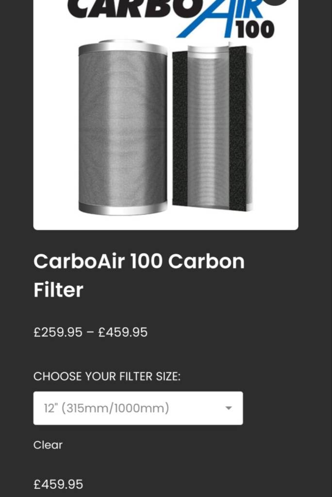 Carbon filter - 10inch 12inch 13inch grow hydro hydroponics gavita rhino fox can 315mm 250mm